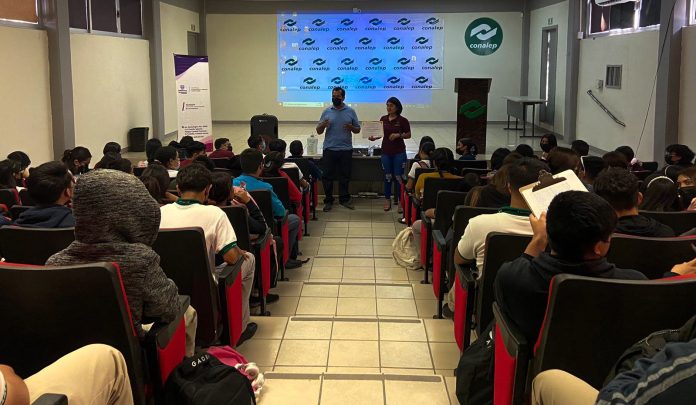 Ciudad Juárez, Chih .- Alumnas y alumnos del Colegio de Educación Profesional Técnica #2 (CONALEP) participaron en la ponencia del psicólogo Daniel Domínguez, quien compartió sus vivencias y las herramientas necesarias para identificar la sintomatología de la depresión y la ansiedad.