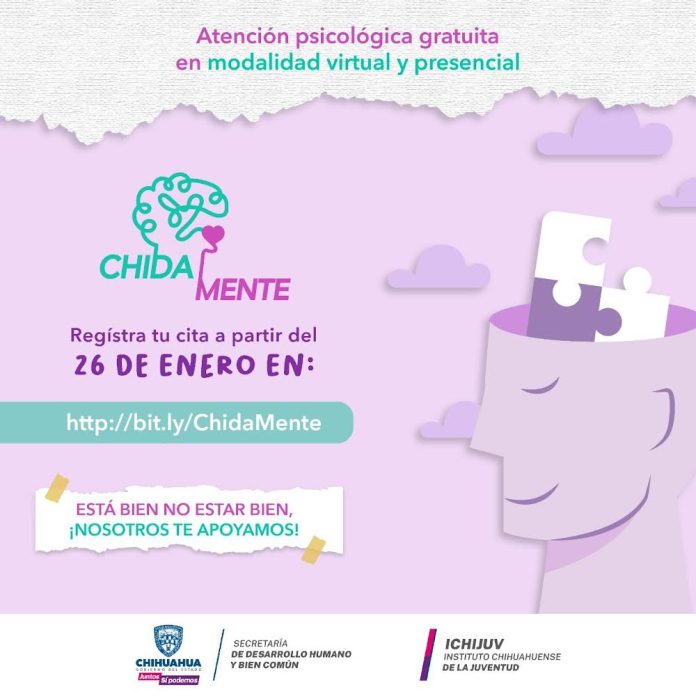 Chihuahua, Chih .- Con el fin de brindar herramientas a las juventudes de esta entidad, para que enfrenten las situaciones complicadas del día a día, el Gobierno del Estado, a través del Instituto Chihuahuense de la Juventud (ICHIJUV), inició a partir de hoy, el registro de las y los jóvenes interesados en recibir atención psicológica de manera gratuita, mediante el programa Chidamente.