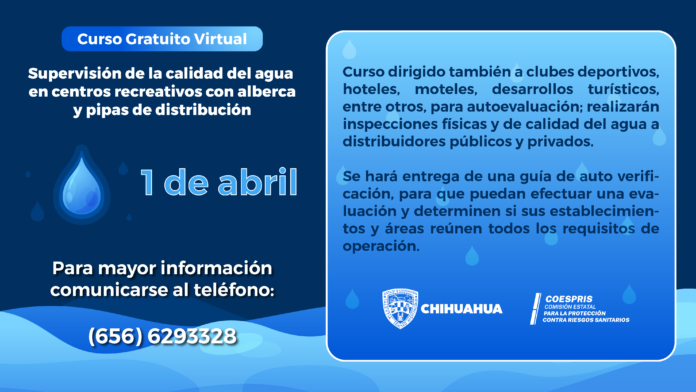 Chihuahua, Chih .- La Comisión Estatal para la Protección contra Riesgos Sanitarios (Coespris), dio a conocer que en los próximos días impartirá pláticas a personas propietarias y encargadas de centros recreativos con alberca, sobre los requisitos que deben de cumplir antes de aperturar sus instalaciones en época de calor para brindar servicio a la población.