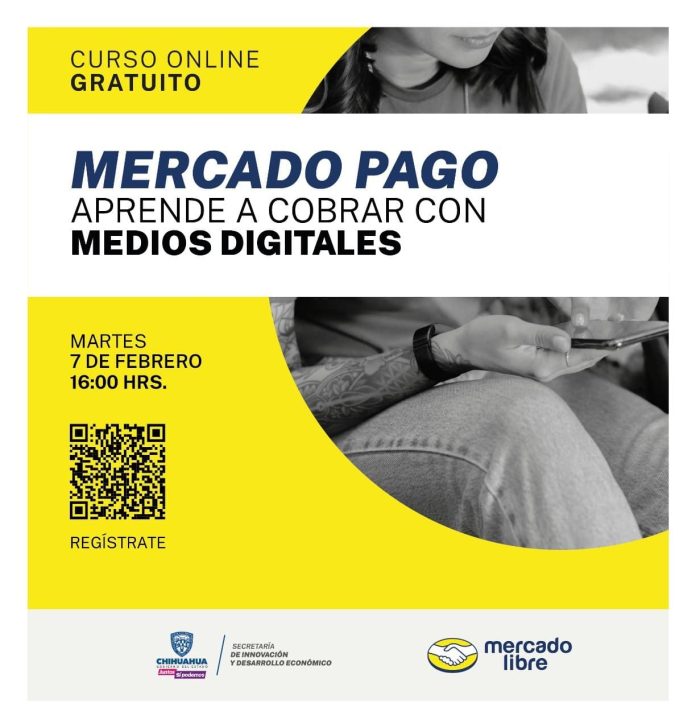 Chihuahua, Chih .- En el marco de la alianza entre Gobierno del Estado y Mercado Libre, con la finalidad de promover la comercialización de productos chihuahuenses en línea, se invita al curso virtual gratuito “Mercado Pago: Aprende a cobrar con medios digitales”, el cual se llevará a cabo este martes 7 de febrero, a las 16:00 horas (hora central CDMX) La liga de registro es: https://mercadolibre.zoom.us/webinar/register/WN_OJ-uiabXSTa4oSEWjoJYSw