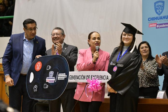 Ciudad Juárez, Chih .- Con el objetivo de incentivar a estudiantes con alto desempeño académico en los niveles de Secundaria, Educación Media Superior y Superior, la Secretaría de Educación y Deporte (SEyD) realizó la ceremonia de premiación del programa “Generación de Excelencia”, para estudiantes de la región Juárez.