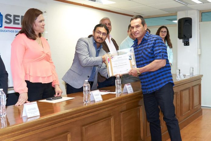 En la entrega simbólica de estímulos, también estuvo presente el secretario General de la Sección 8 del sindicato Nacional de Trabajadores de la Educación, Eduardo Antonio Zendejas Amparán, quien refirió que los trabajadores de la educación juegan un papel de gran relevancia, cuya experiencia lleva de la mano el trato humano, digno y solidario.
