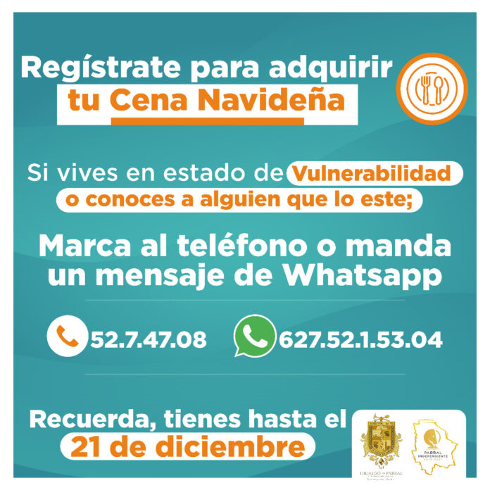 Hidalgo del Parral, Chih. – Con el fin de que un mayor número de personas puedan beneficiarse con una Cena Navideña se amplió el periodo de registro al programa, por lo que el próximo lunes será el último día para registrarse.