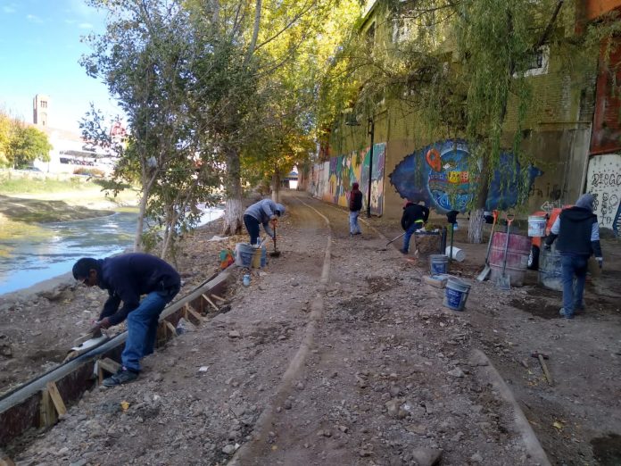 Parra, Chih .- Tras las lluvias de meses pasados y derivado de la creciente del Río Parral, gran parte del Parque Lineal quedó severamente dañado afectando con ello a quienes han hecho de este lugar su espacio favorito para la práctica de ejercicios.