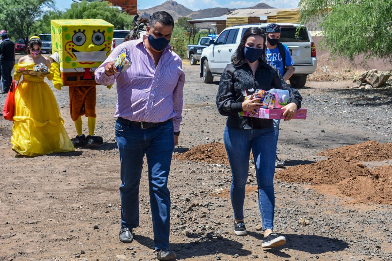 Hidalgo del Parral, Chih. – Una grata sorpresa se llevaron niñas y niños de la ciudad, al recibir del Alcalde Alfredo Lozoya y su esposa Sol Sánchez juguetes, bolsitas de dulces y cubre bocas, al celebrar el Día del Niño.