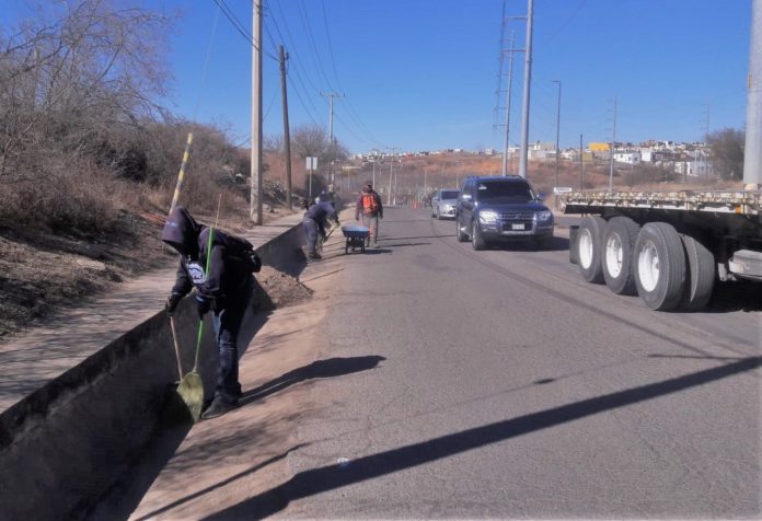 Parral, Chih .- Continuando con las acciones de limpieza exhaustiva emprendidas por el personal de Servicios Públicos, se trabaja en estos momentos en el camellón que va de la Puerta del Tiempo hacia el Campus Santa Teresa del Tecnológico de Parral, esto luego de concluir el mantenimiento del anillo perimetral en sus secciones norte y sur.