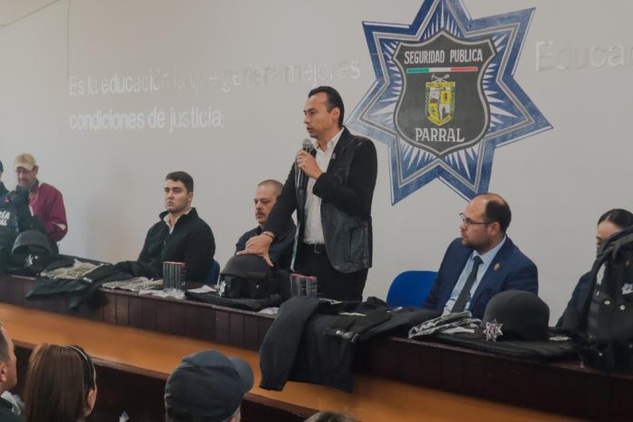 Parral, Chih .- Esta mañana, el alcalde César Peña Valles llevó a cabo la entrega de equipo táctico a elementos de la Dirección General de Seguridad Pública Municipal, así como uniformes, un esfuerzo conjunto del Gobierno de Parral y el Gobierno del Estado para mejorar la imagen y fortalecer la capacidad de respuesta de toda la corporación en favor de la seguridad de la ciudadanía.