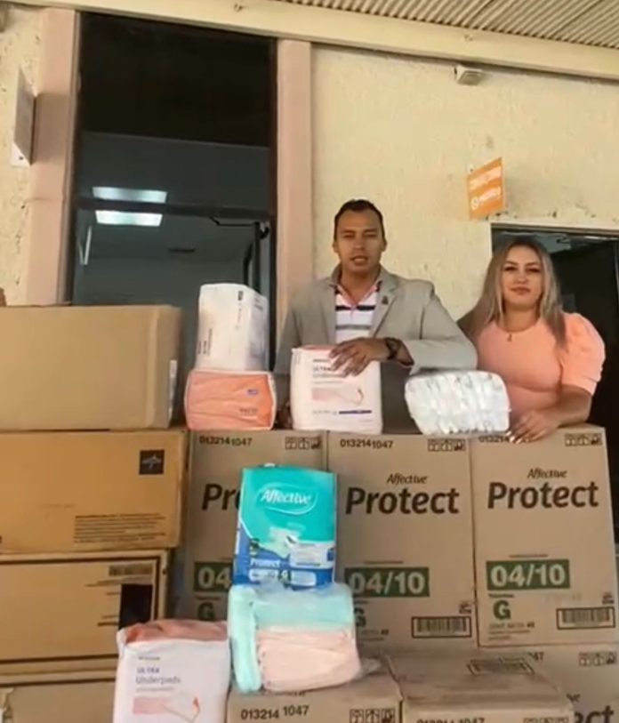 Entrega alcalde César Peña pañales para adulto en Desarrollo Social