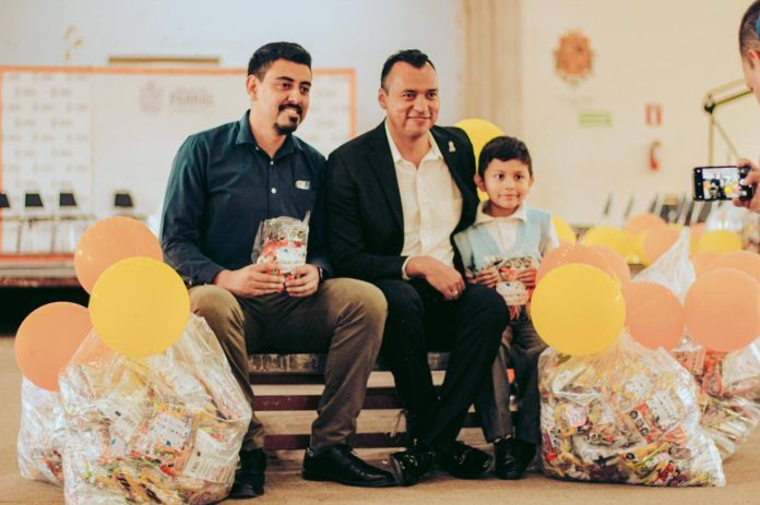 Parral, Chih .- Esta mañana durante la entrega de bolsitas de dulces para primarias y jardines de niños, el licenciado, César Peña, refrendó su compromiso de continuar trabajando día con día para apoyar la educación de las niñas, niños, y jóvenes de Parral, para que cuenten con escuelas dignas y seguras y las mejores condiciones para su educación.
