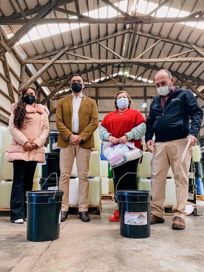 Con presencia del licenciado, Carlos Bremer, presidente de FECHAC, su directora, licenciada, Claudia Villalobos, la titular de SEECH zona sur, profesora, Rosa Isela Velazco y la titular de Vinculación Educativa, profesora Otilia Torresdey, el Presidente Municipal de Parral, destacó los resultados del trabajo colaborativo que hoy permitió iniciar la entrega de 574 bidones de cloro, 574 de gel antibacterial y 574 de jabón, de 20 litros cada uno, así como 45 mil 324 cubre bocas para niños y 21 mil 876 para adulto, en modo acorde a la población escolar de cada plantel escolar.