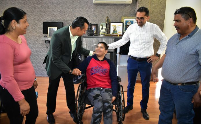 Esta mañana, el Alcalde, César Peña Valles recibió en su despacho a Sergio Armando y a sus padres, en donde le hizo entrega de una silla de ruedas que le facilitará su movilidad y mejorara su calidad de vida.