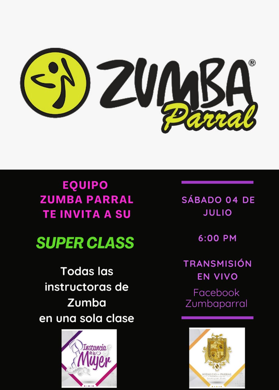 Bajo dicha premisa se recordó que desde el mes de marzo las instructoras del grupo Zumba Parral, han venido realizando dos sesiones diarias de instrucción de zumba los lunes de 8:30 a 9:30, de martes a viernes de 10:00 a 11:00 y de 6:00 a 7:00 de la tarde de lunes a viernes a través de la página de Instancia de la Mujer, ante la situación de pandemia que se vive.