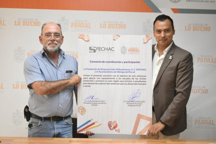 Ciudad Juárez, Chih .- El Gobierno de Parral y la Fundación del Empresariado Chihuahuense, A. C. (FECHAC), anunciaron la firma de un importante convenio de coordinación y participación con el objetivo de fortalecer la educación en la ciudad.