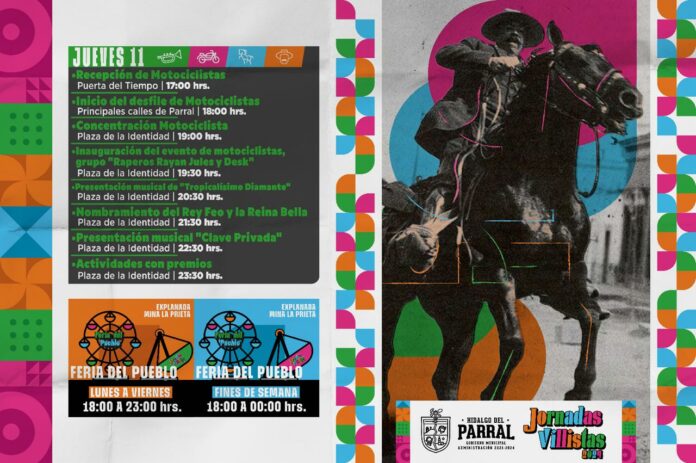 Parral, Chih .- El Gobierno de Parral anuncia el inicio de las Jornadas Villistas “Vive la magia de Parral”, un evento tradicional que reúne a la ciudadanía para celebrar la historia y la cultura de este rico mineral, por lo que se tendrá la presentación estelar de Tropicalismo Diamante.