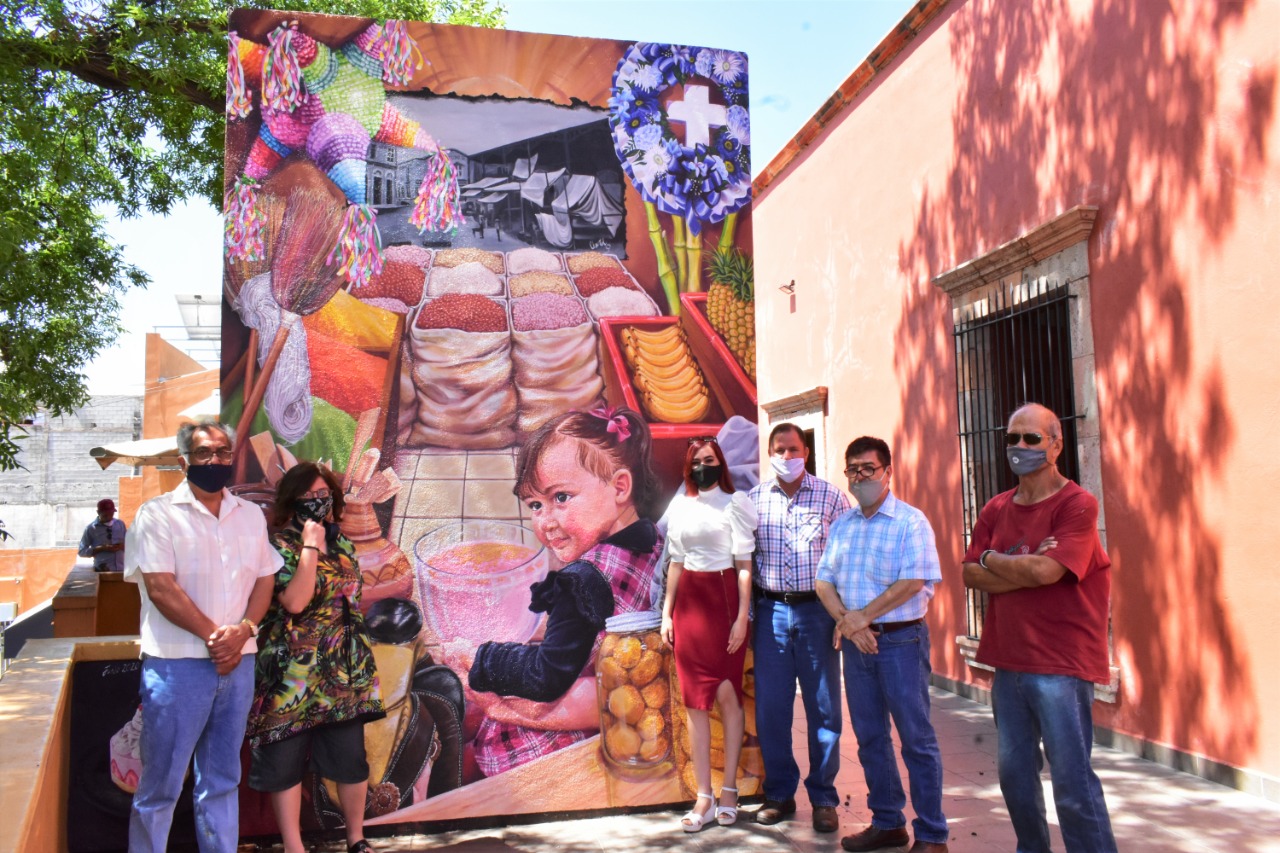 Hidalgo del Parral, Chih. – Al mediodía de este martes el profesor, Cayetano Girón, titular de Cultura en el Municipio, procedió a la develación del nuevo mural “Paseo Tradicional” que contribuye a la identidad del Mercado Hidalgo, en su tradicional sector de jugos y licuados.