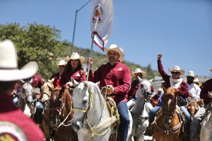 Ciudad Juárez, Chih .- Abanderando al municipio, el alcalde arribó a Parral a caballo, así como los cientos de jinetes de todo el estado que se reunieron en este punto después de más de dos semanas que partieron desde Ciudad Juárez, el pasado 2 de julio.