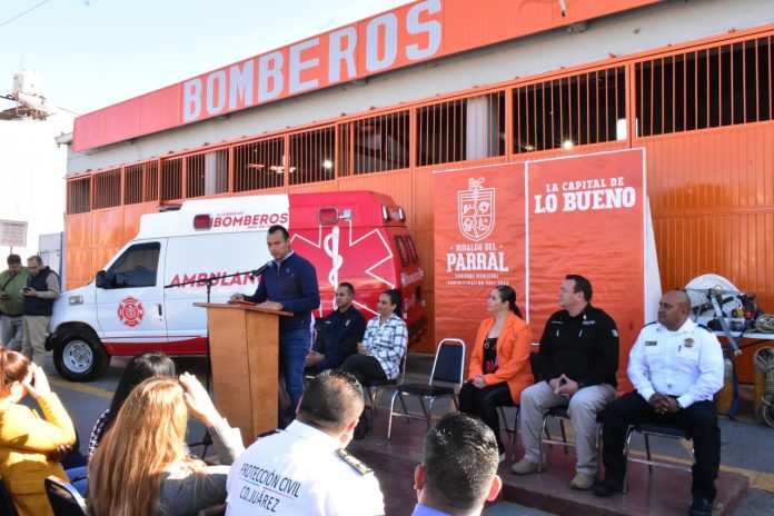 Parral, Chih .– El alcalde César Peña Valles recibió del Ayuntamiento de Ciudad Juárez una ambulancia que fuera gestionada ante su homólogo fronterizo, Cruz Pérez Cuéllar, con el objetivo de fortalecer el trabajo que diariamente realiza el Departamento de Bomberos de esta ciudad en atención de las necesidades propias de la ciudadanía.
