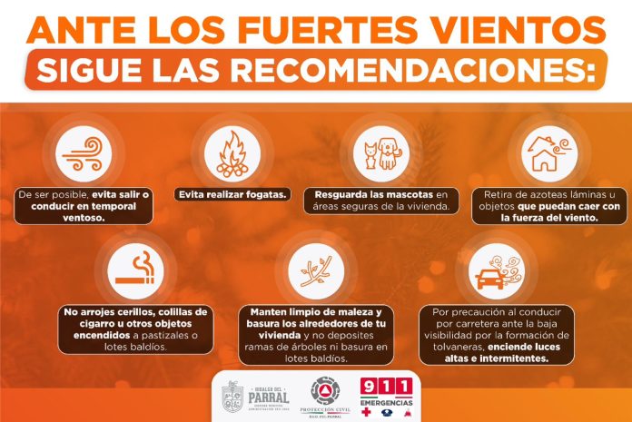 La Unidad Local de Protección Civil destacó la importancia de retirar objetos que puedan volar en patios y azoteas para prevenir posibles accidentes.