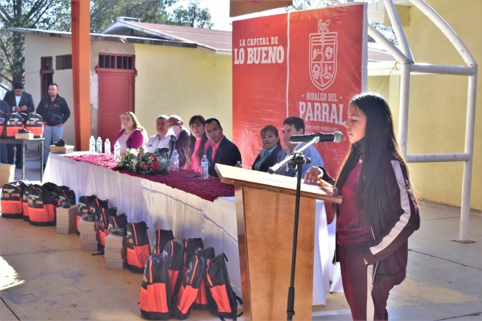 Peña Valles recordó la difícil época de la pandemia que obligó a los alumnos a estudiar en casa sin poder salir a la calle, por lo que calificó la entrega de uniformes por parte de su Gobierno, como la ratificación de su compromiso de apoyo a la educación y una bienvenida a las escuelas de Parral.