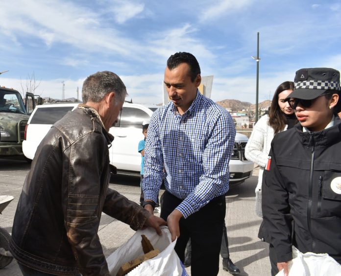 Ciudad Juárez, Chih .- Este viernes, dentro de las acciones de acompañamiento y proximidad social, el alcalde César Peña Valles y personal de la Secretaría de la Defensa Nacional y la Guardia Nacional, llevaron apoyos a los vecinos de la colonia Tierra y Libertad a propósito de las bajas temperaturas.
