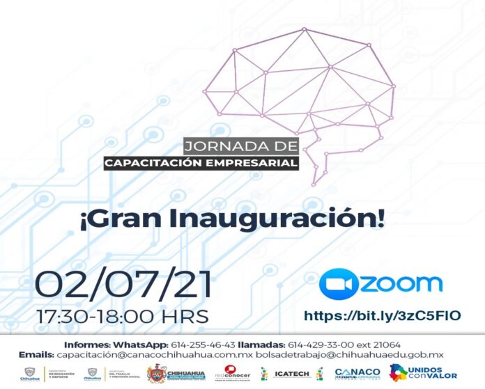 Chihuahua, Chih . – La Secretaría de Educación y Deporte (SEyD), informa que del 2 al 9 de julio se llevará a cabo la Jornada de Capacitación Empresarial, vía Zoom, a fin de dotar a las empresas de herramientas para que actualicen sus modelos de negocios y puedan cumplir con las nuevas disposiciones oficiales derivadas la contingencia por COVID-19.