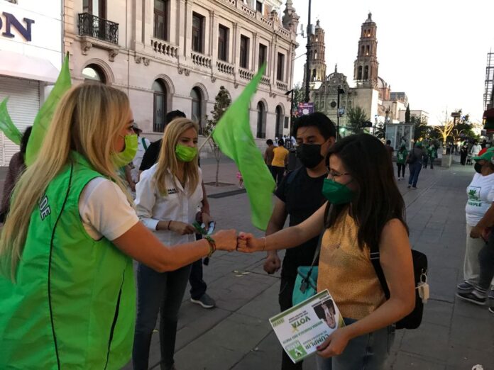 Chihuahua, Chih. – En un recorrido por calles del Centro Histórico de la ciudad, la candidata del PVEM por la gobernatura, Brenda Ríos Prieto, presentó ante los ciudadanos sus propuestas y escuchó sus necesidades.