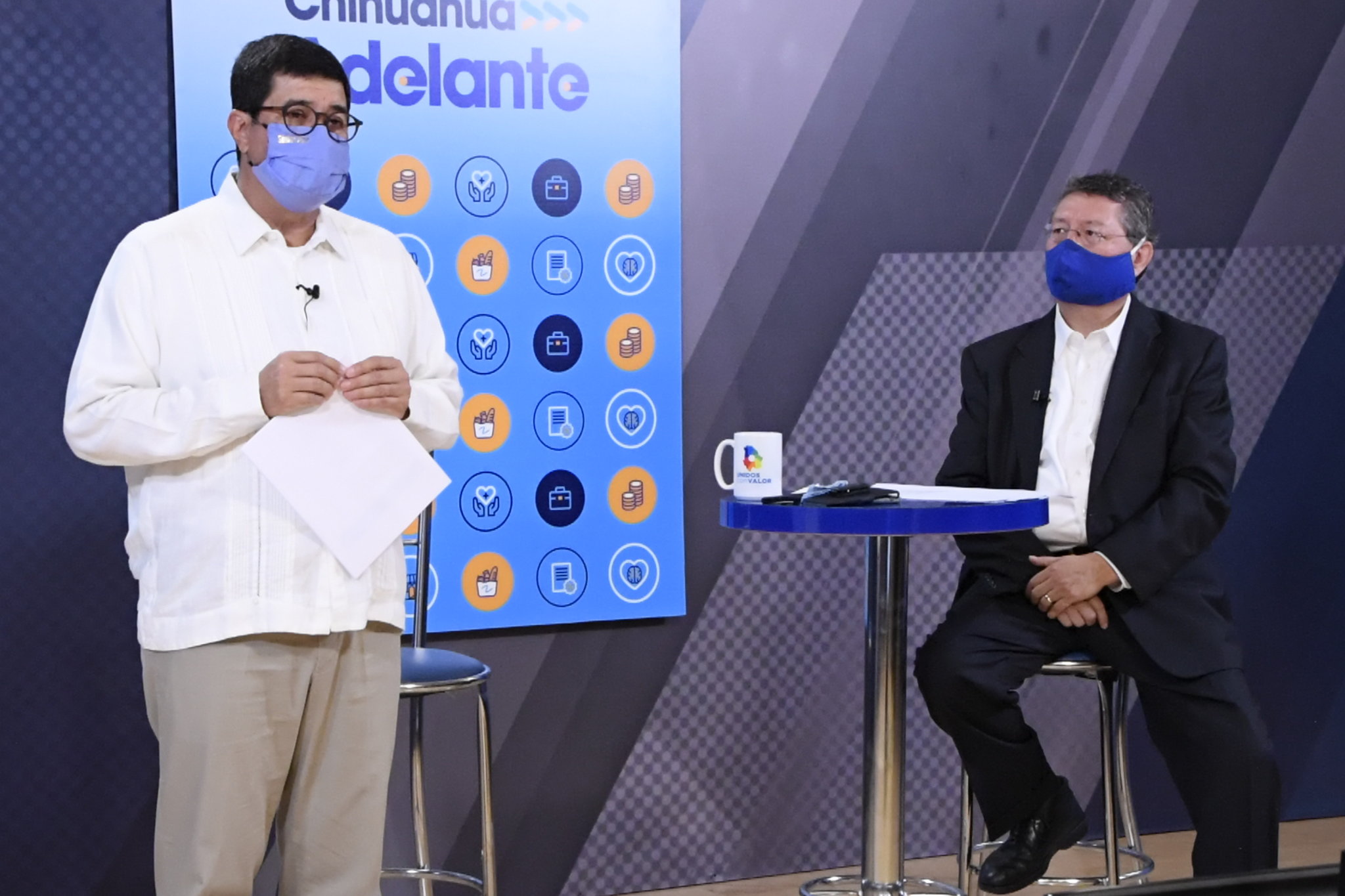 Para informar a las y los chihuahuenses, sobre los avances en el Plan de Inversión Estatal en materia de agua potable, alcantarillado y saneamiento, el gobernador estuvo acompañado por Óscar Ibáñez Hernández, director ejecutivo de la Junta Central de Agua y Saneamiento (JCAS), en el espacio informativo sobre los avances del Plan Emergente de Apoyo y Protección a la Salud, Empleo e Ingreso Familiar.