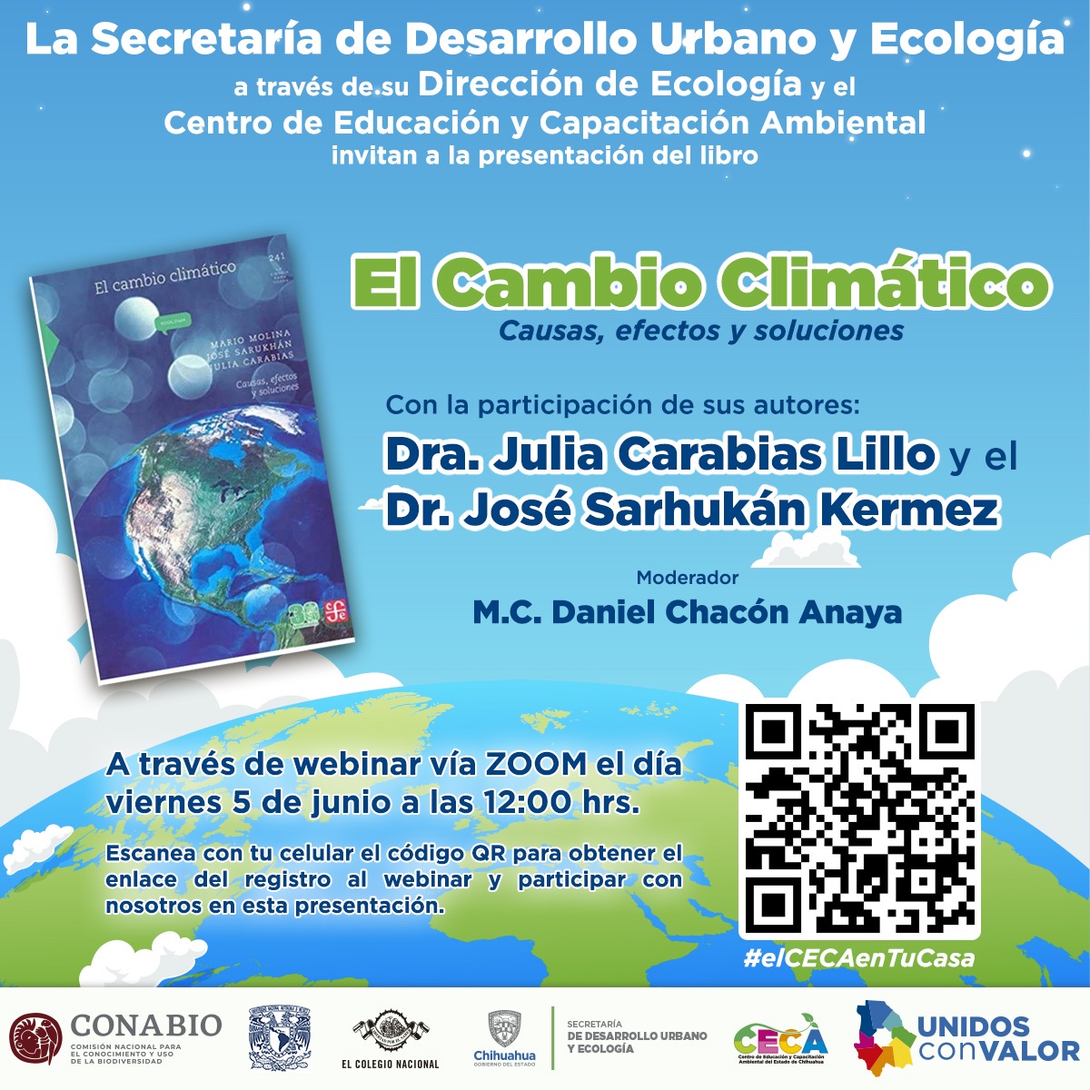 Para el viernes 5 de junio, se abre al público en general la presentación virtual del libro: El Cambio Climático: causas, efectos y soluciones, en donde se contará con la participación de sus autores, la Dra. Julia Carabias, y el Dr. José Sarukhán.