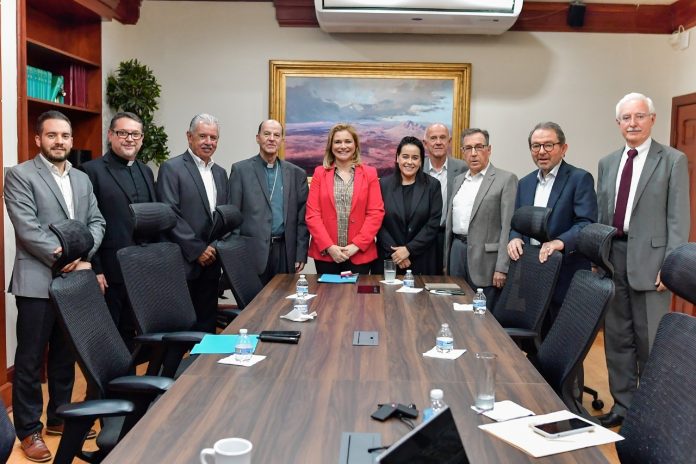 Chihuahua, Chih .- La gobernadora Maru Campos Galván recibió en Palacio de Gobierno a empresarios chihuahuenses y líderes religiosos, quienes le presentaron la propuesta de construcción del “Centro Binacional de Arte Virreinal” en la ciudad de Chihuahua para rescatar el arte que atesora el estado creado durante la época del virreinato en México