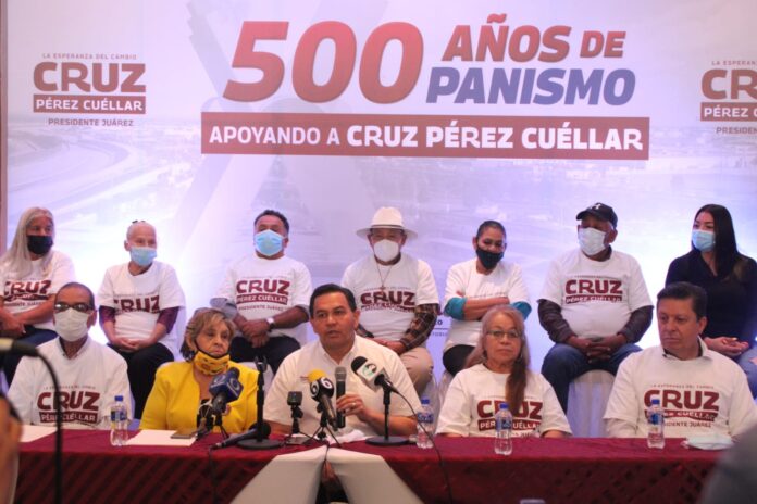 “Estoy aquí, por Cruz Pérez Cuéllar. Es un hombre de palabra, y si alguien puede hacer algo por la ciudad es él. Estoy aquí no pensando en renunciar al PAN, estoy aquí para apoyar a Cruz”, señaló Pedro Martínez Chairez, un exdiputado y delegado estatal de Acción Nacional.