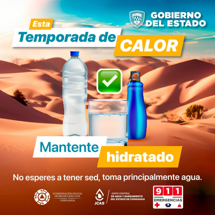 Chihuahua, Chih. (ADN/Staff) – La Coordinación Estatal de Protección Civil (CEPC) ha alertado a la población sobre las altas temperaturas que se esperan en Chihuahua durante lo que resta de la presente semana. Según informan, se mantendrán temperaturas superiores a los 30 grados centígrados en gran parte del territorio, debido a la presencia de una corriente en chorro, una línea seca sobre Coahuila y un canal de baja presión que favorecen la formación de nubosidad variable sin potencial de precipitaciones.