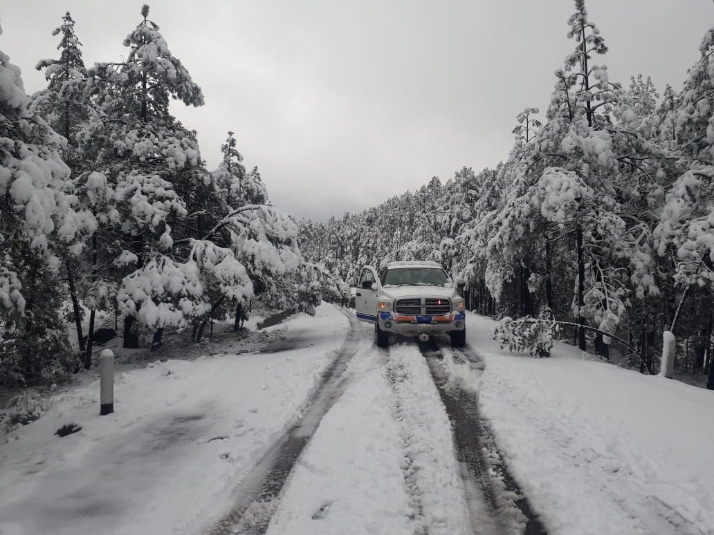 Chihuahua, Chih. – La Coordinación Estatal de Protección Civil dio a conocer que durante las primeras horas de este miércoles 4 de marzo, cuadrillas de la Secretaría de Comunicaciones y Obras Públicas (SCOP), así como de la Coordinación Estatal de Protección Civil y personal de los municipios de las zonas serranas, se trasladaron a los principales tramos carreteros que se vieron afectados con nieve y hielo sobre el asfalto.