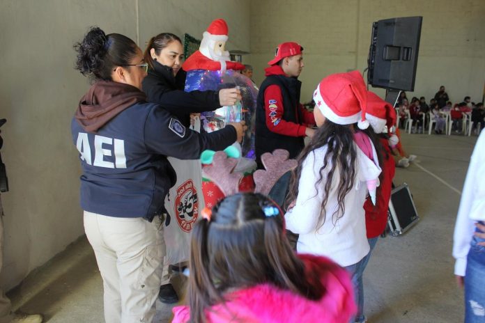 El evento se realizó en la Escuela Primaria Francisco I. Madero de la colonia Los Alcaldes con el objetivo de llevar alegría y esparcimiento por las fechas decembrinas, pero también para socializar el trabajo preventivo que los agentes de la AEI realizan en los planteles educativos.