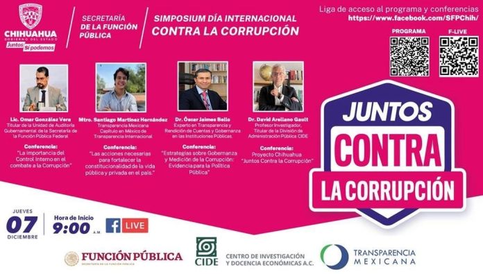 Chihuahua, Chih .- En el marco del “Día Internacional Contra la Corrupción”, la Secretaría de la Función Pública (SFP), organizará este 7 de diciembre un simposio, donde se impartirán cuatro conferencias magistrales sobre este importante tema.