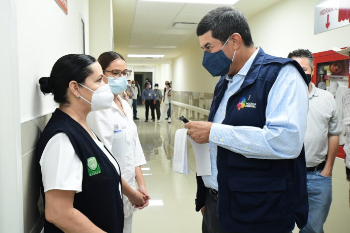 A lo largo del recorrido presentó la ampliación del vestíbulo, baños públicos, el control de acceso, urgencias y su sala de espera, el laboratorio, banco de sangre y archivo.