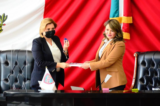 La Presidenta del Congreso del Estado, Geo Bujanda, recibió de manos de la gobernadora Maru Campos el Plan Estatal de Desarrollo 2022- 2027 tal como lo marca la Constitución.