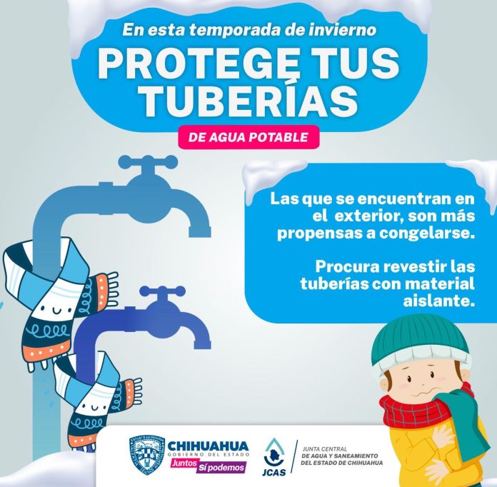 Chihuahua, Chih .– Ante el Frente Frío Número 16, que ocasiona un ambiente frío, con heladas que se registran en distintas partes del Estado de Chihuahua, la JCAS exhorta a tomar medidas de prevención a fin de reducir el riesgo del congelamiento y rotura de las tuberías.