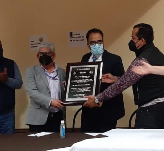 Ciudad Juárez, Chih. – La Asociación de Agentes Aduanales de Ojinaga entregó este día dos reconocimientos al coordinador estatal para la defensa de la Cuarta Transformación en Chihuahua, Juan Carlos Loera de la Rosa por su gestión y diligencias realizadas ante Caminos y Puentes Federales (Capaufe) que activaron las obras para la ampliación del nuevo puente internacional Ojinaga-Presidio.