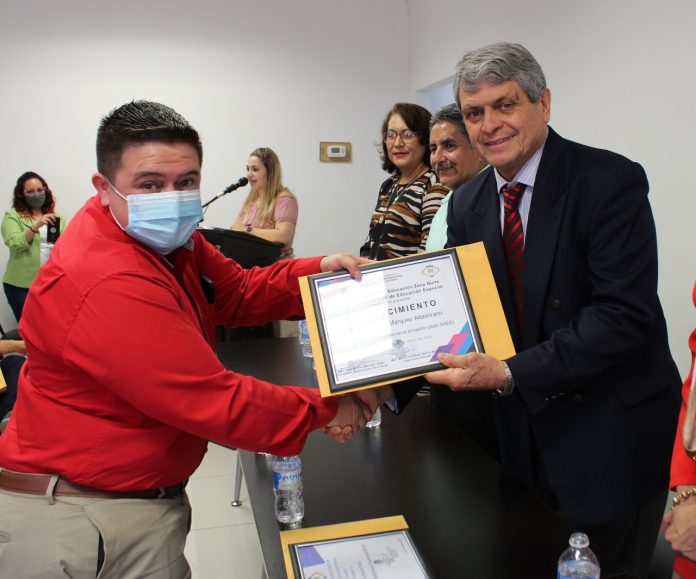 Ciudad Juárez, Chih .- La Subsecretaría de Educación y Deporte de la Zona Norte, a través de la Zona 99 de Educación Especial del Subsistema Estatal, entregó reconocimientos a docentes por haber realizado proyectos de capacitación e inclusión durante los ciclos escolares 2020-2021 y 2021-2022.