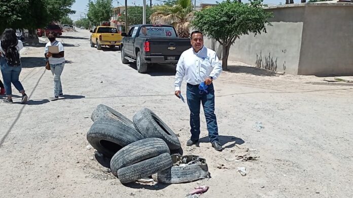 En el recorrido el mismo candidato fue testigo que en una calle la alcantarilla estaba tapada con decenas de llantas: Una de las quejas de los vecinos es que la JMAS no esta cumpliendo con su obligación, aquí nos encontramos una alcantarilla cubierta con llantas de desecho poniendo en riesgo así la integridad de las familias y los niños que circulan en la zona.