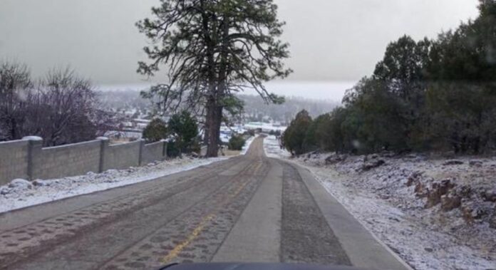 En comunidades como Majalca, Santa Rosa, Mil Castillos y la zona norte del municipio de Chihuahua, se ha reportado la caída de nieve.