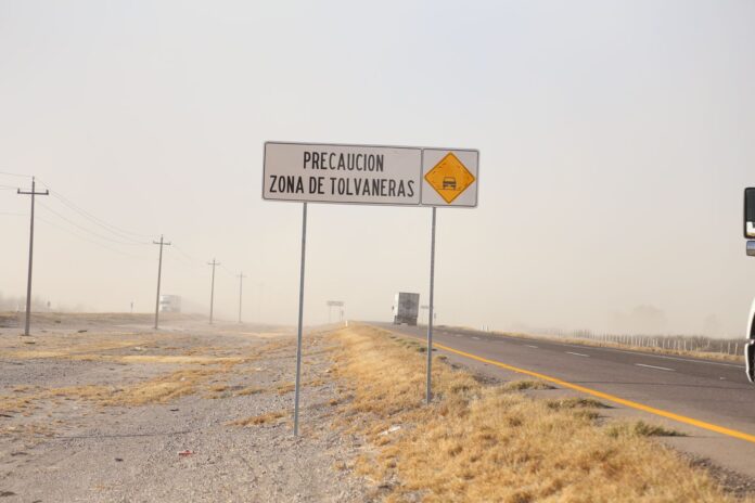 Varios tramos carreteros ubicados en el municipio de Ahumada, registraron poca visibilidad debido a las tolvaneras registradas, por lo que se pide a los conductores que transiten por dichas zonas, hacerlo con máxima precaución o esperar a que los vientos disminuyan.