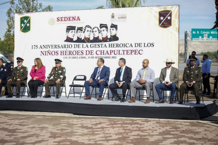 Ahí el representante de Gobierno del Estado Zona Norte, Oscar Ibáñez Hernández, resaltó la importancia de esta fecha en que se honra a estos cadetes del Heroico Colegio Militar, porque uno de ellos, Agustín Melgar, era originario del estado de Chihuahua.
