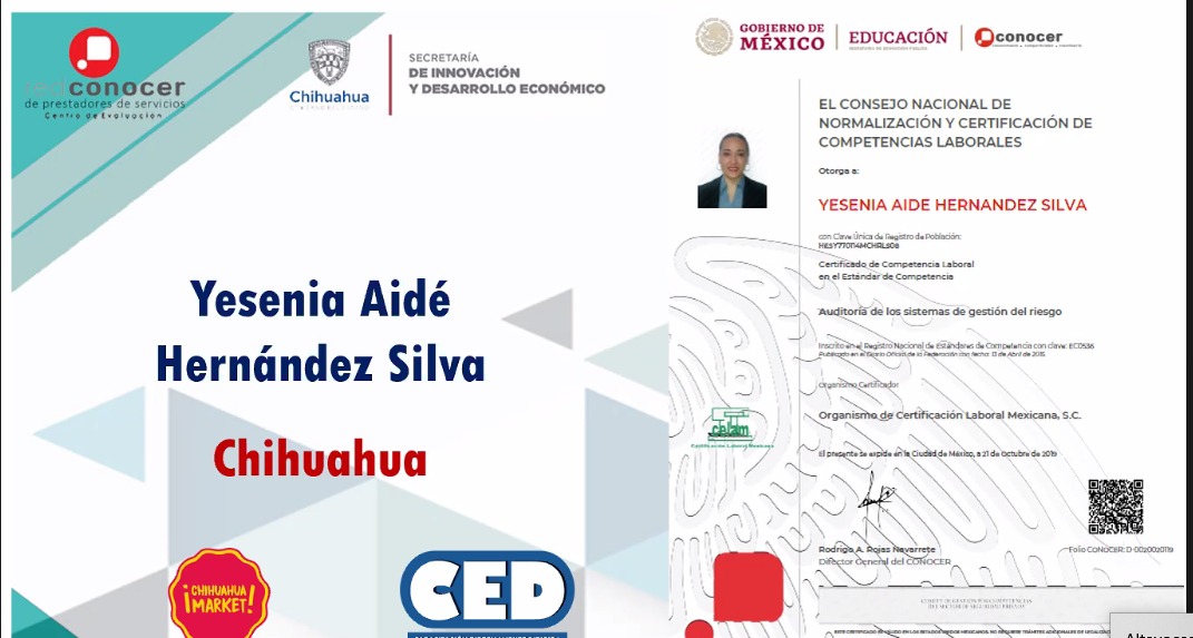 Chihuahua, Chih.- La Secretaría de Innovación y Desarrollo Económico (SIDE), a través de la Dirección de Comercio en conjunto con el Consejo Nacional de Normalización y Certificación de Competencias Laborales (CONOCER), certificó a once auditores de Chihuahua Market en Sistemas de Gestión de Riesgo.