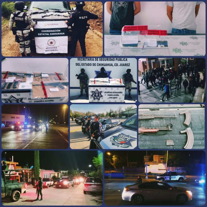 Chihuahua, Chih .- Del total de los detenidos, 9  fueron presentados ante la Fiscalía General de la República (FGR) por tratarse de delitos del fuero federal. Y un total de 171 personas fueron presentadas a la Fiscalía General del Estado (FGE) por los delitos de: