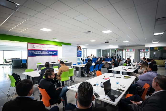 Chihuahua, Chih .- Como parte del proyecto Chihuahua E-Mobility Ready 2022, Gobierno del Estado, a través de la Secretaría de Innovación y Desarrollo Económico (SIDE), y de manera conjunta con el William Davidson Institute, de la Universidad de Michigan, impulsó la realización del taller Workshop “E-Mobility Opportunities”, en el Centro de Inteligencia Artificial de Ciudad Juárez.