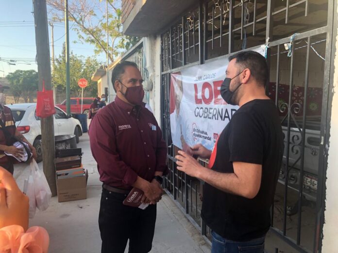 Ciudad Juárez, Chih. – Problemas de orden vial fueron las principales quejas que recogió el candidato a la gubernatura de la coalición Juntos haremos historia en Chihuahua, Juan Carlos Loera de la Rosa, durante el recorrido que realizó por calles del fraccionamiento Las Arcadas, ubicadas al sur oriente de la ciudad.