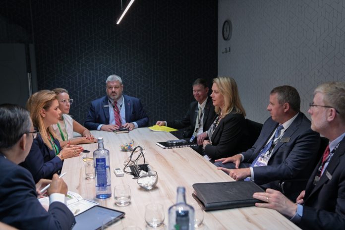 París, Francia .- Como parte de la agenda de trabajo que realiza por Francia, en el marco de la Feria Aeroespacial Paris Air Show 2023, la Gobernadora Maru Campos, se reunió con altos ejecutivos de la empresa Bell Helicopter.