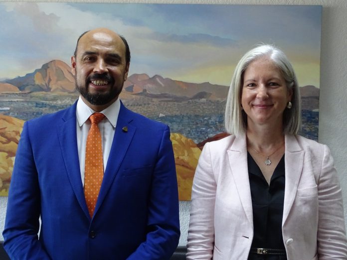 Chihuahua, Chih .- El secretario de Desarrollo Urbano y Ecología (SDUE), Gabriel Valdez Juárez, recibió a la Cónsul de Canadá en Monterrey, Sandra Shaddick, en la visita de cortesía que la diplomática realizó a esta dependencia, para abordar áreas de oportunidad para ambos gobiernos y temas de interés mutuo como lo son el desarrollo urbano, movilidad, vivienda y el ambientalismo.