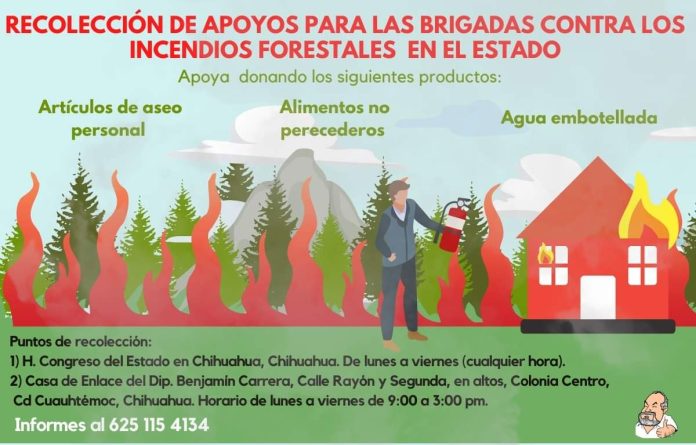 Invitó a los chihuahuenses a solidarizarse con los brigadistas, con botellas de agua y latas de alimentos en los distintos centros de acopio que se instalarán en el edificio del Congreso del Estado, así como la casa de enlace del diputado en Cuauhtémoc y Ciudad Juárez.